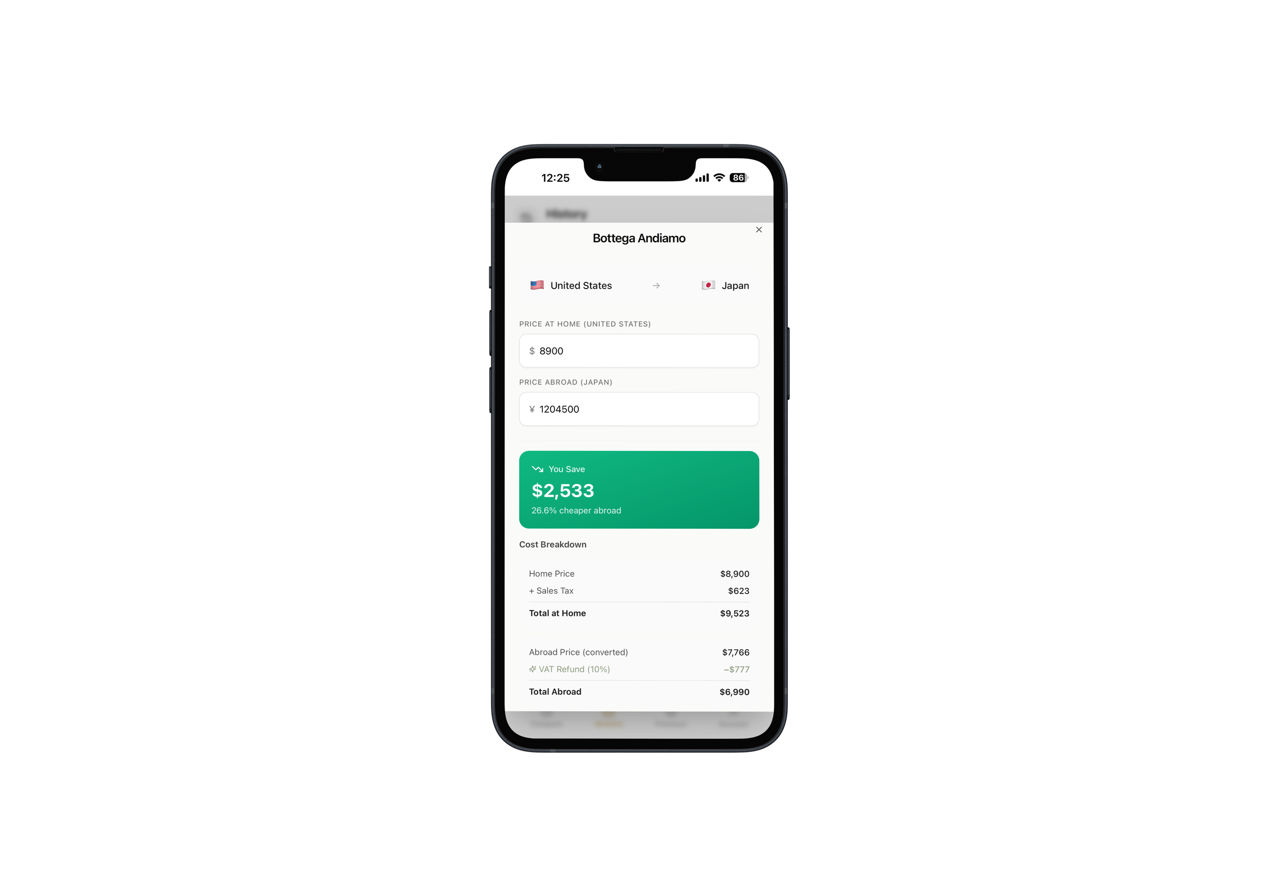 See the savings that comes from currency conversions and VAT refunds